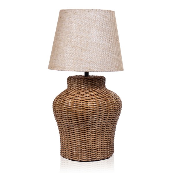 - Sofisticação natural e iluminação suave se encontram neste abajur de fibra natural.