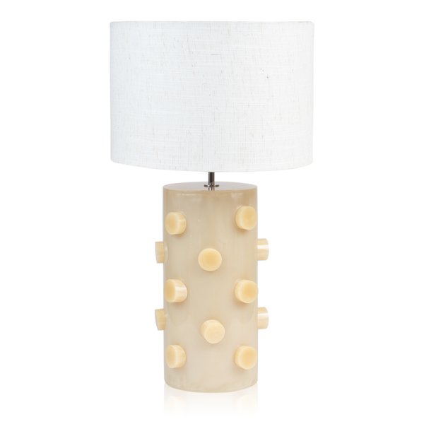 Abajur Pinos Bege Resina Polido C/ Metal Cromado