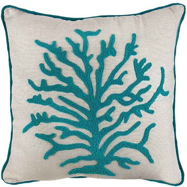 Almofada Linho Cru 52x52 C/ Bordado Manual Coral Tifany