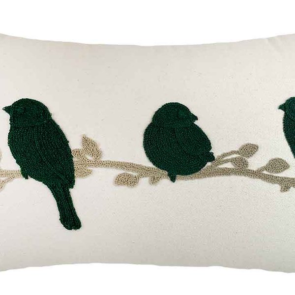Almofada Sarja 35x52 C/Bordado Chinile Passaros Verde