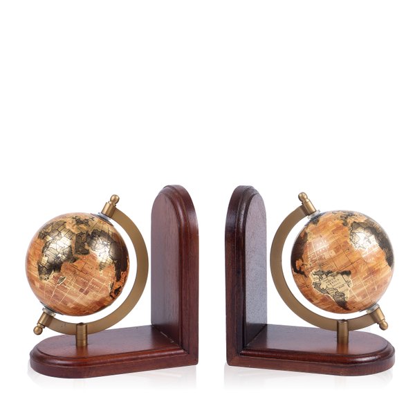 Aparador de Livros Globo Terrestre Bege - Base Madeira