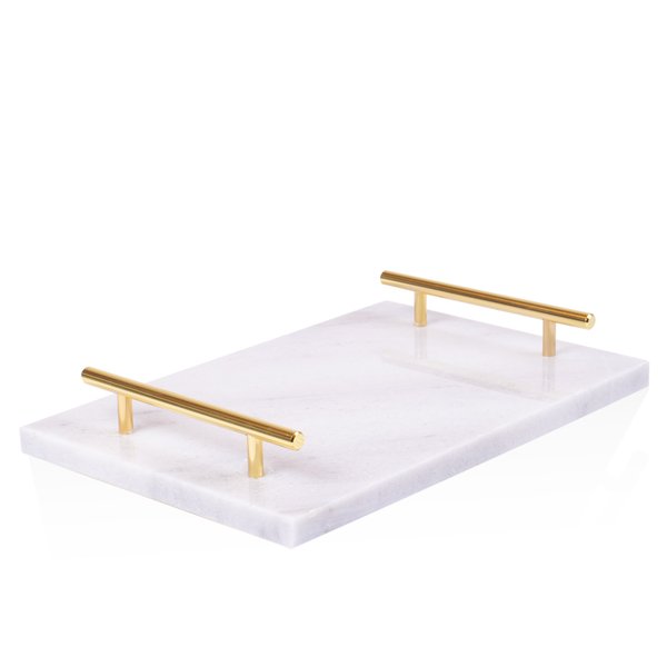 Bandeja em Mármore Marques Branco c/ Alças Douradas