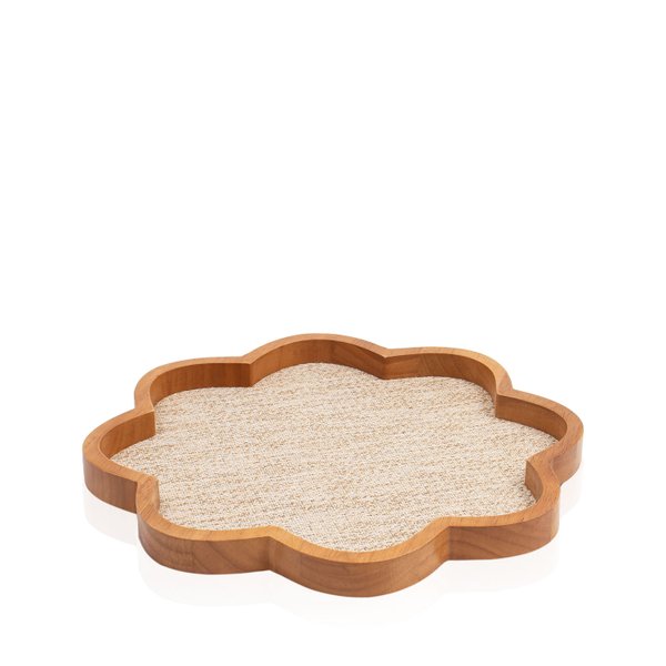 A Bandeja Flor Trama Linho Bege é a união perfeita entre design contemporâneo e delicadeza artesanal.