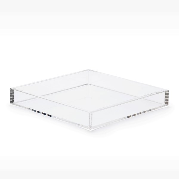 Conheça a Bandeja Lisa em Acrílico, tamanho grande e formato quadrado, uma peça que combina neutralidade e elegância para complementar qualquer ambiente.