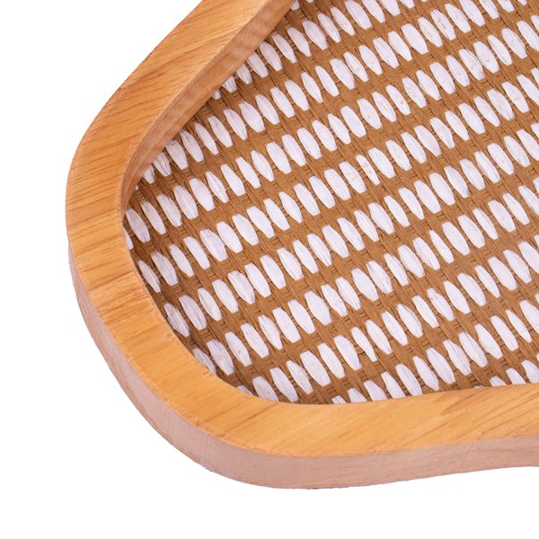Bandeja Orgânica Em Madeira e Textura Palha 40x28cm