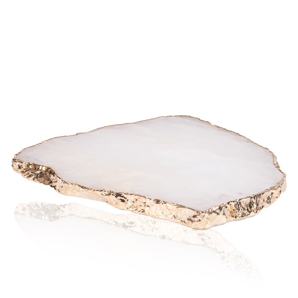 Bandeja Pedra Natural Quartzo Branco c/ Borda Dourada