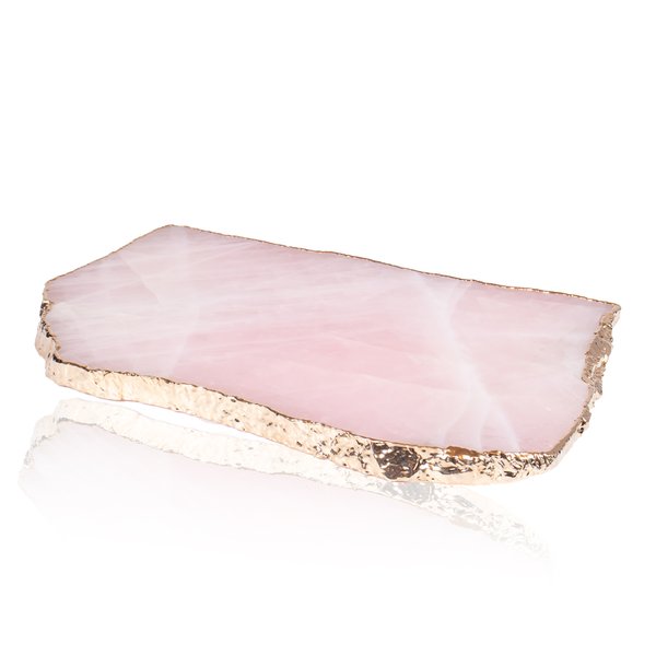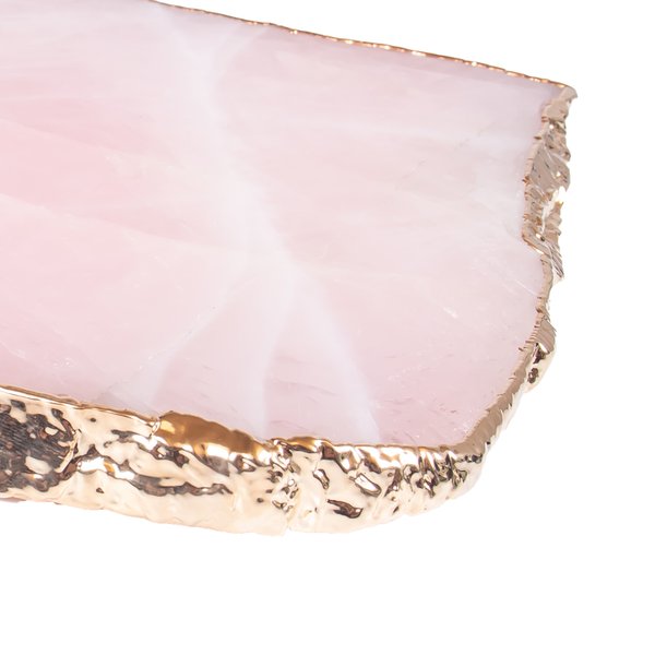 Bandeja Pedra Natural Quartzo Rosa c/ Borda Dourada