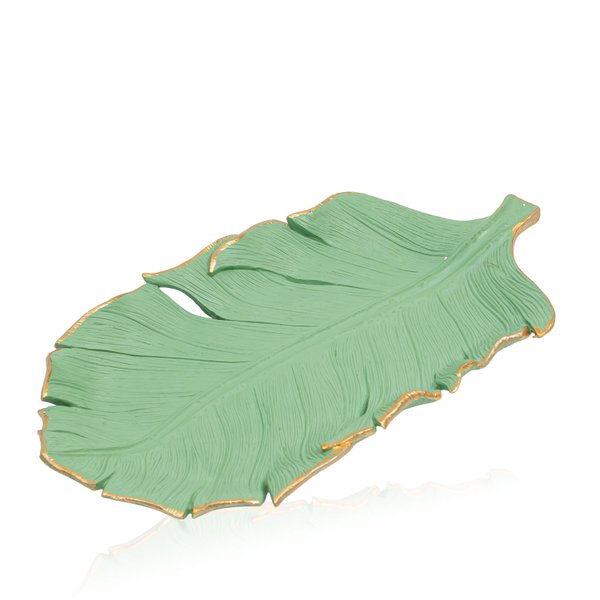 Adicione um toque de natureza e sofisticação à sua decoração com a Bandeja de Resina Formato Folha na encantadora cor verde folha.