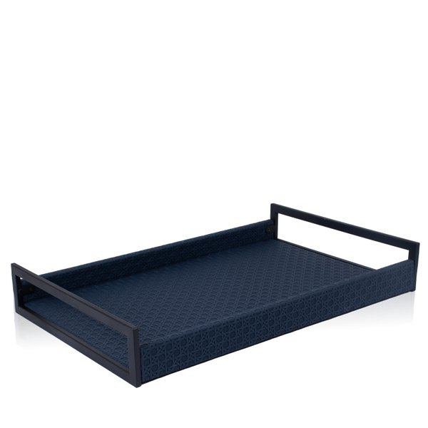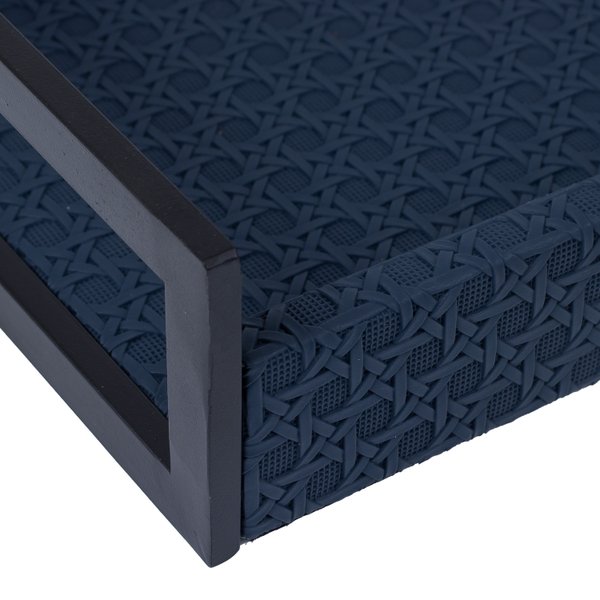 Transforme a organização e apresentação em sua casa ou escritório com a Bandeja Retangular em Madeira e Textura Palha na sofisticada cor azul marinho.