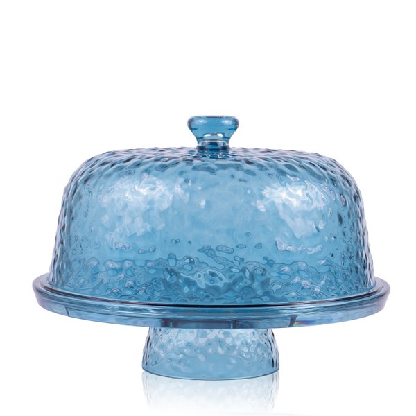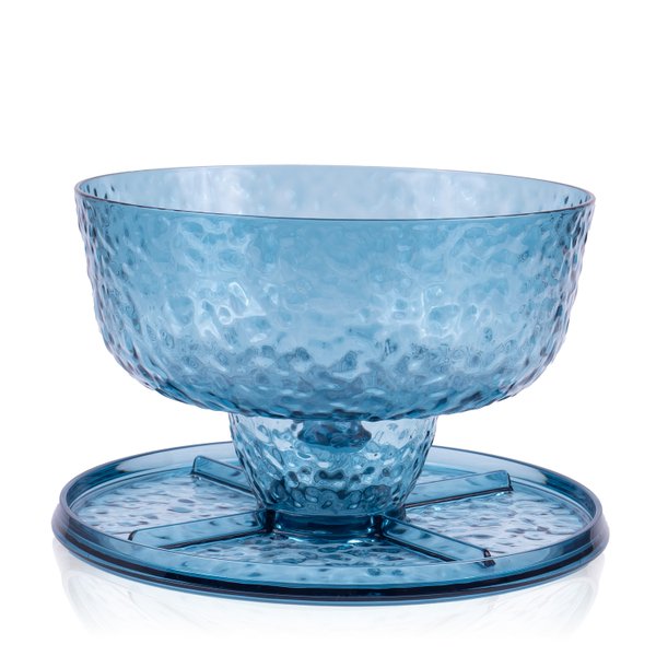 Deixe sua mesa ainda mais charmosa e versátil com a Boleira e Petisqueira Azul Texturizada em Acrílico.