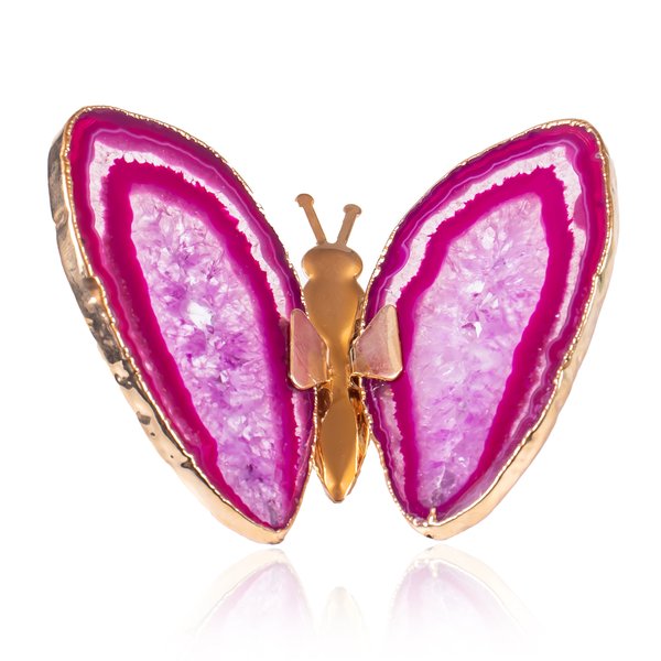 Borboleta Pedra Natural Àgata Pink c/ Borda Dourada