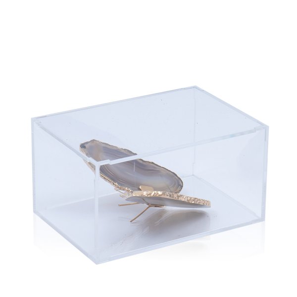 Torne seus espaços ainda mais elegantes e práticos com a Caixa Acrílico Borboleta Pedra Ágata Natural.