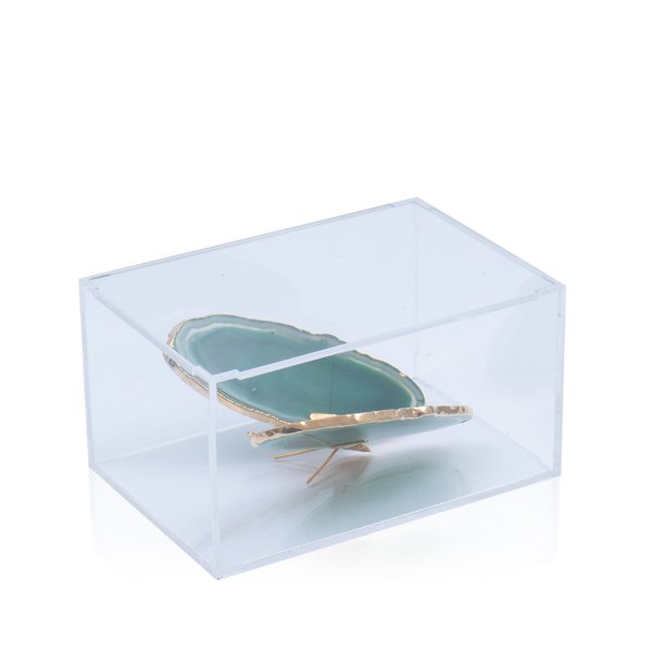 Torne seus espaços ainda mais elegantes e práticos com a Caixa Acrílico Borboleta Pedra Ágata Verde.