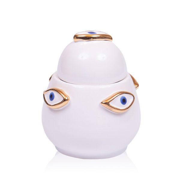 Caixa Eye Gold Cerâmica Branca C/ Olho Azul