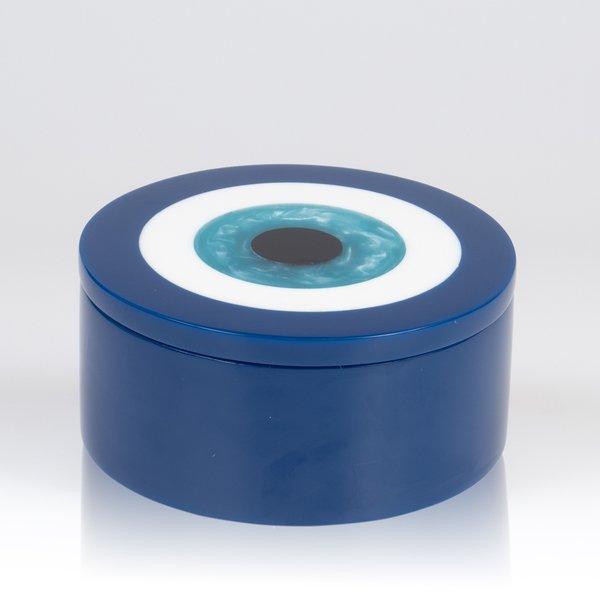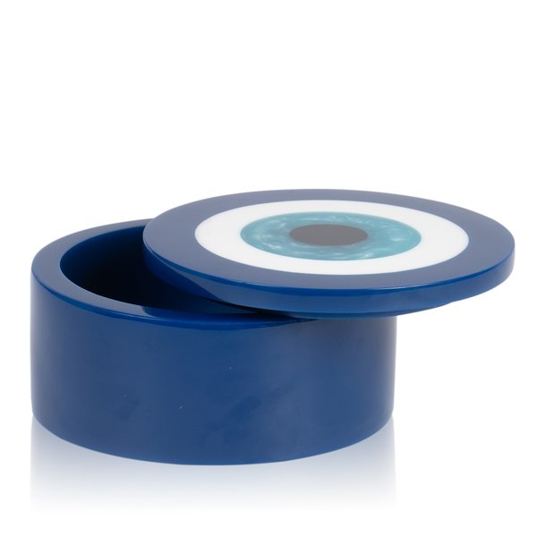 Caixa Resina Polida Redonda Média Olho Grego Azul