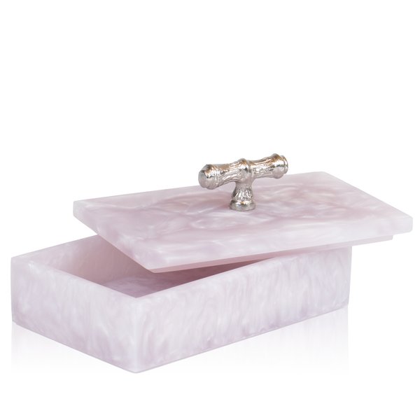 Transforme seus ambientes com esta caixa decorativa retangular, confeccionada em resina de poliéster de alta qualidade na elegante cor madrepérola.
