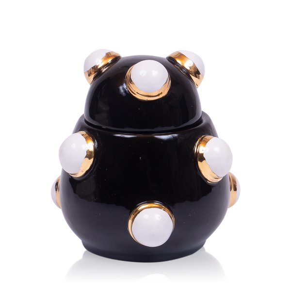A "Caixa Yoko Gold Cerâmica Preta C/ Branco" é um exemplo sublime de artesanato e design moderno, combinando funcionalidade prática com um apelo estético de luxo.