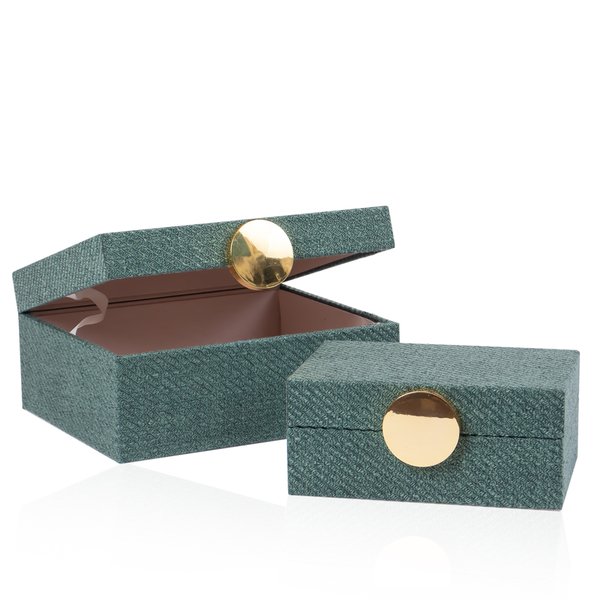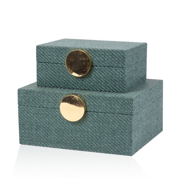 Caixas De Madeira e Tecido Verde c/ Puxador Dourado