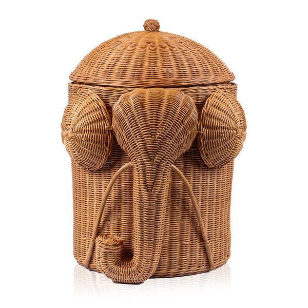 Leve um toque de criatividade e funcionalidade à sua casa com a cesta em rattan natural no formato de elefante.