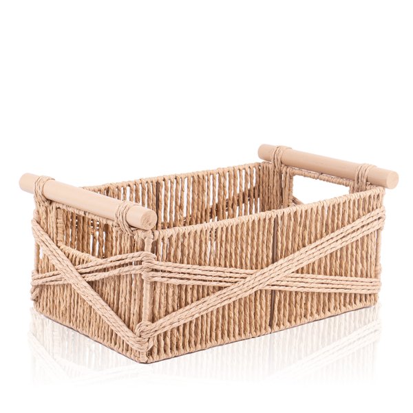 Inclua o Cesto Retangular Palha Bege com Detalhe Madeira na sua casa e una praticidade, organização e estilo em todos os ambientes.