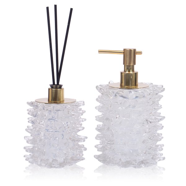 Conjunto 2 Peças Saboneteira e Difusor em Murano Pérola