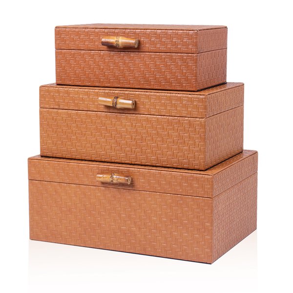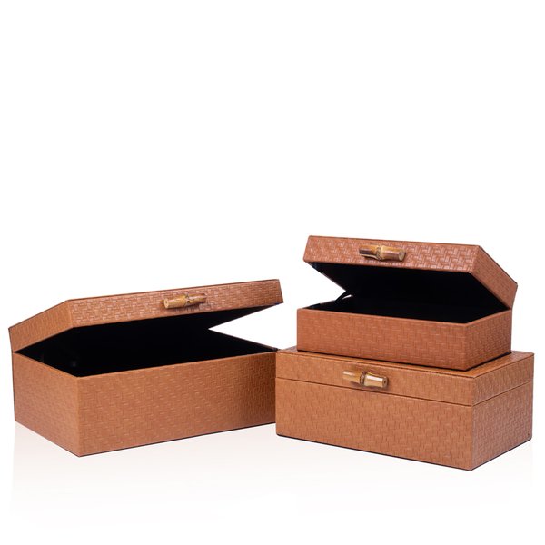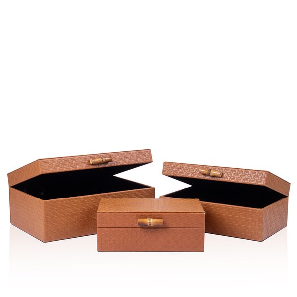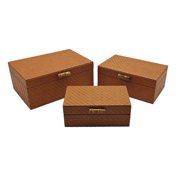 Conjunto 3 Caixas em Madeira Marrom c/ Puxador Bambu