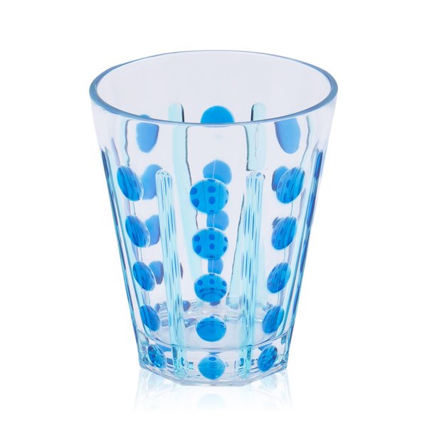 Conjunto 6 Copos Bolas e Listras Acrílico 414 ml Azul