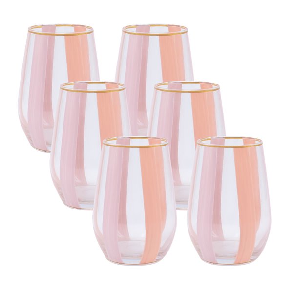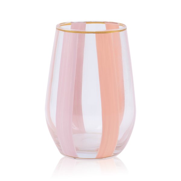 Cada copo é uma obra-prima artesanal, apresentando listras verticais em dois tons de rosa que evocam um senso de movimento e fluidez visual.