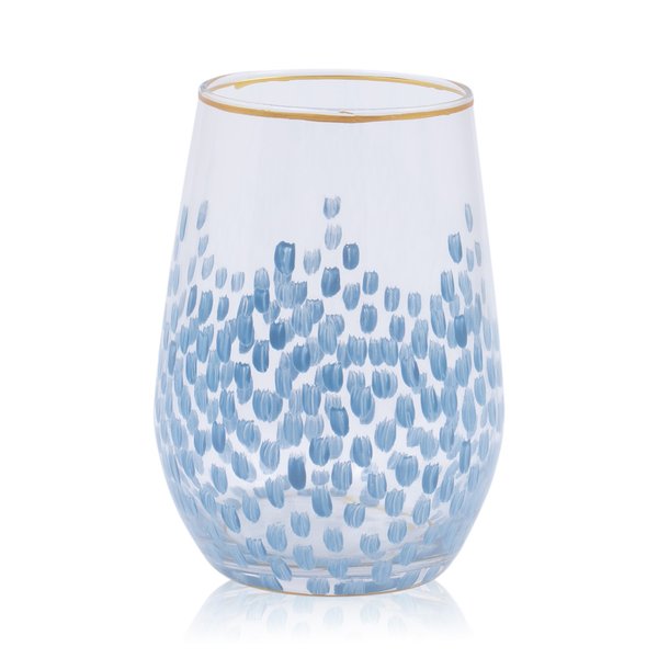 Cada copo é caracterizado por sua forma delicadamente trabalhada à mão, onde a suavidade das linhas e a opacidade criteriosa transformam a luz em opalescentes reflexos azuis.