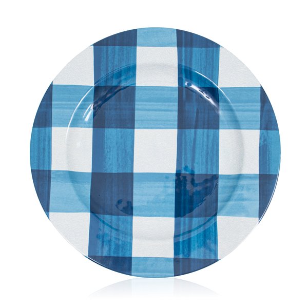 Conjunto 6 Prato Rasos Melamina Xadrez Azul 27cm