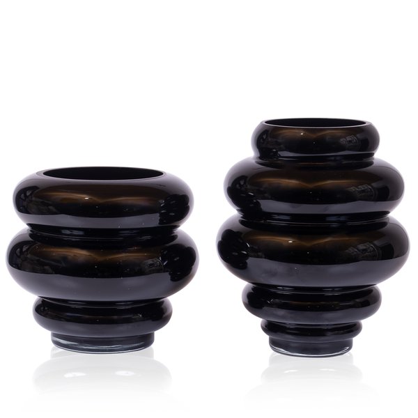 Eleve a estética do seu espaço com a Dupla de Vasos em Vidro na sofisticada cor preto.