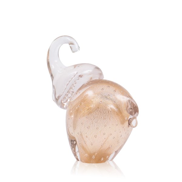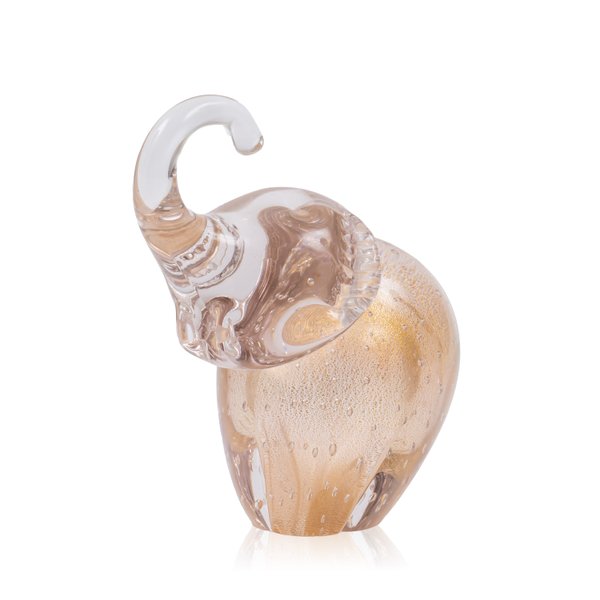 O Elefante em Cristal de Murano na elegante cor transparente Com pó de Ouro é uma peça que transforma qualquer ambiente, agregando imponência, brilho e versatilidade à decoração.
