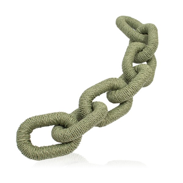 Composto por 7 elos interligados, o design traz equilíbrio entre a rusticidade da madeira natural e a delicadeza da palha em tom bege, criando uma peça única e cheia de personalidade.