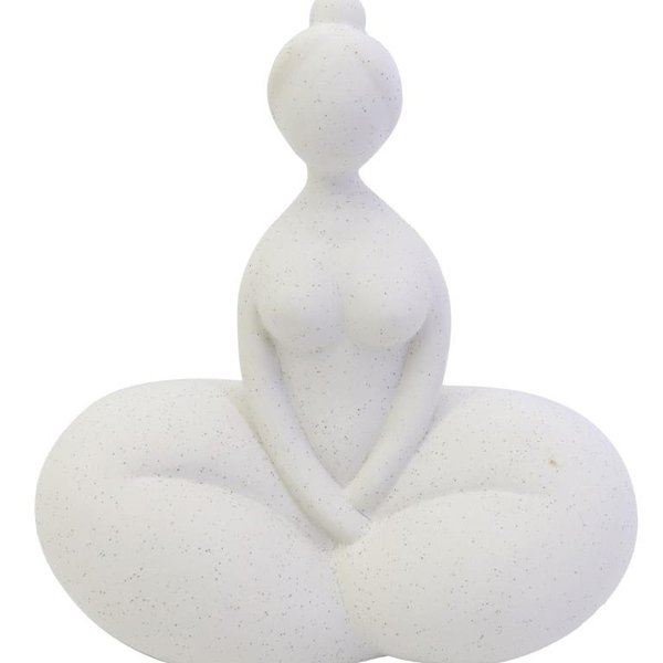 Escultura Decorativa Mulher Perna Cruzada Dolomita é uma peça exclusiva esculpida em cerâmica, com acabamento perfeito que ressalta sua beleza e durabilidade.