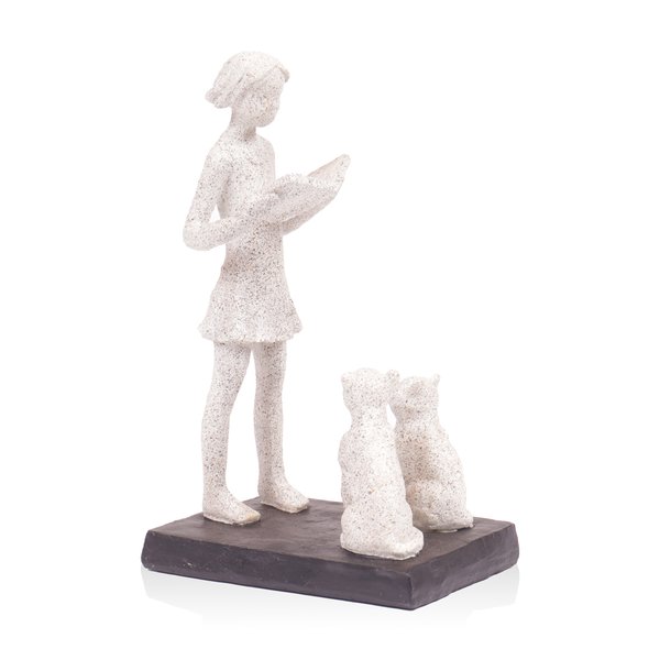A Escultura em Pó de Pedra com Menina lendo Livro e Gatos aos pés é uma verdadeira obra de arte, esculpida manualmente com delicadeza e precisão.