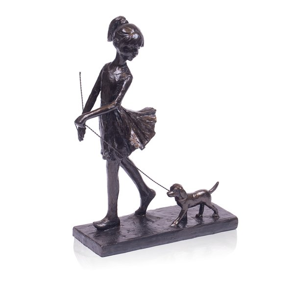 Leve ao seu ambiente um toque de ternura com a Escultura em Resina Menina e Cachorro.