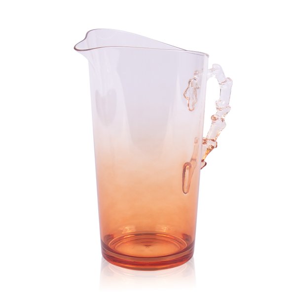 Leve mais cor e modernidade para os seus momentos à mesa com a Jarra Acrílico Degradê Laranja Desenho Alça Coral, com capacidade de 2,3 litros.