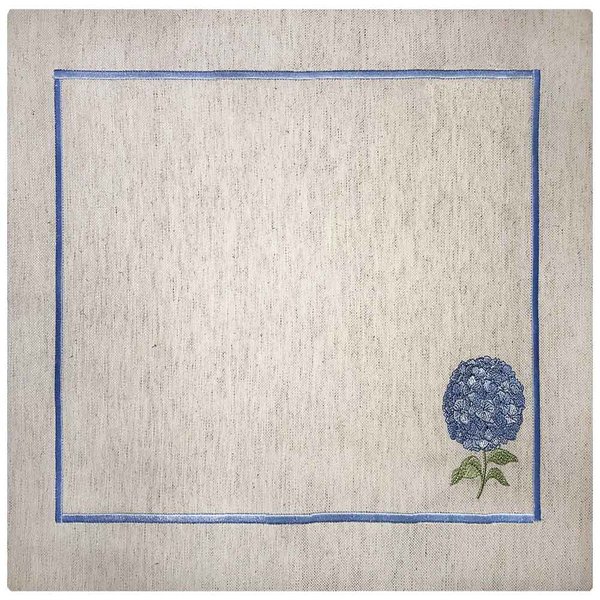 - Detalhamento: Bordas bordadas em azul com detalhe floral que proporciona um acabamento refinado.