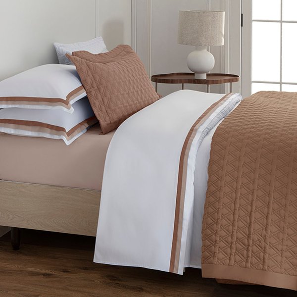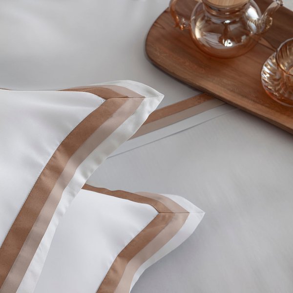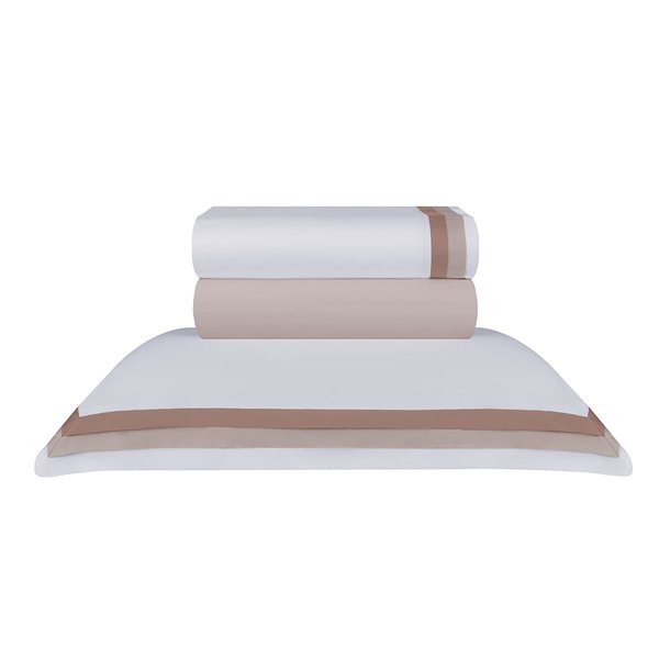Experimente o luxo e a sofisticação do Jogo de Lençol Queen da coleção Saint Moritz, na elegante combinação amendoas.