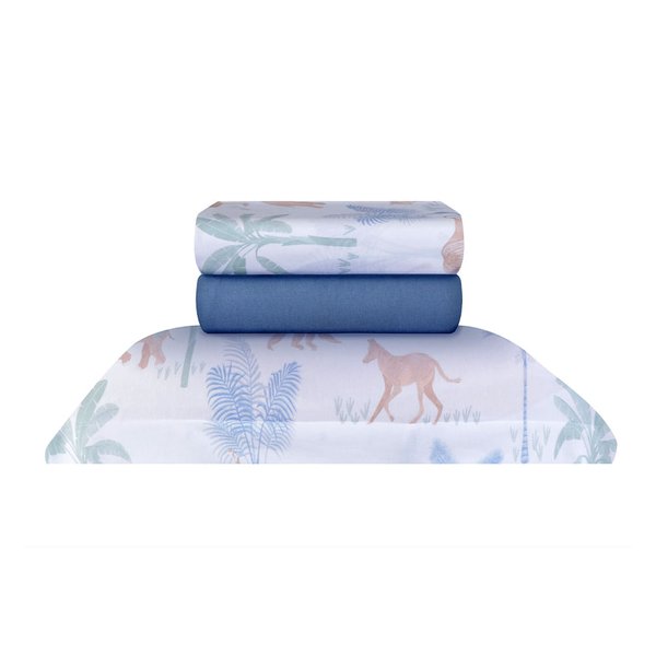 Transforme o quarto das crianças em uma aventura com o Jogo de Lençol Solteiro da coleção Savana, da Naturalle.