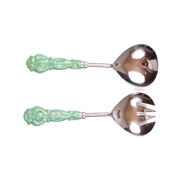 Composto por duas colheres em inox de alta qualidade, com cabos de alumínio, este conjunto oferece um design exclusivo que enriquece qualquer mesa.
