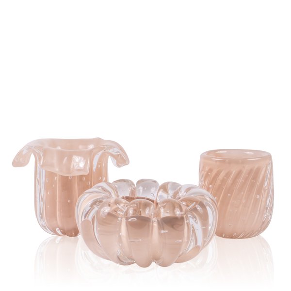 Transforme seus espaços com o Kit de Vasos Murano na sofisticada cor champanhe, modelo Salvador.