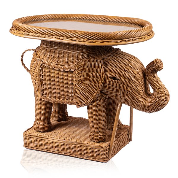 Transforme seus espaços com a charmosa Mesa em Rattan Natural, projetada em um formato único de elefante.