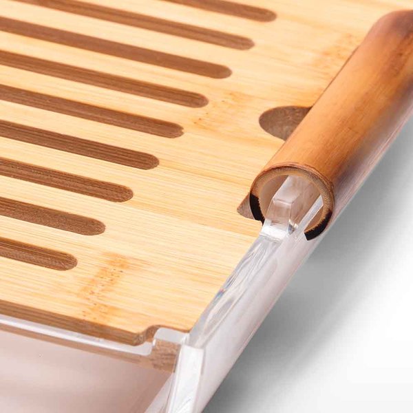 - Design Sofisticado: Une o charme natural do bambu com a modernidade do acrílico transparente, proporcionando um visual elegante.