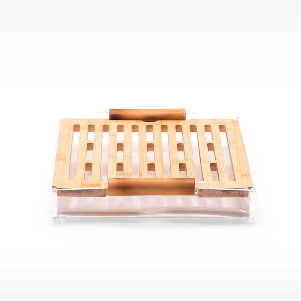 Transforme sua mesa de café da manhã com a Migalheira em Acrílico e Bambu, um utensílio que combina estilo, funcionalidade e sofisticação.