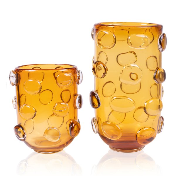 Dê um toque de sofisticação e charme ao seu ambiente com o Par de Vasos em Vidro na cor Âmbar.