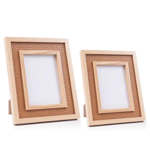 Com um design único que combina bordas de madeira com um preenchimento central trabalhado em treliçado de palha, esses porta retratos são perfeitos para exibir suas lembranças mais queridas.