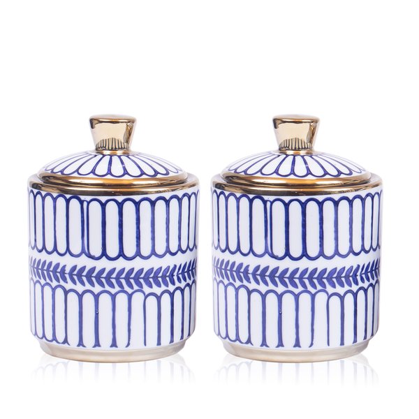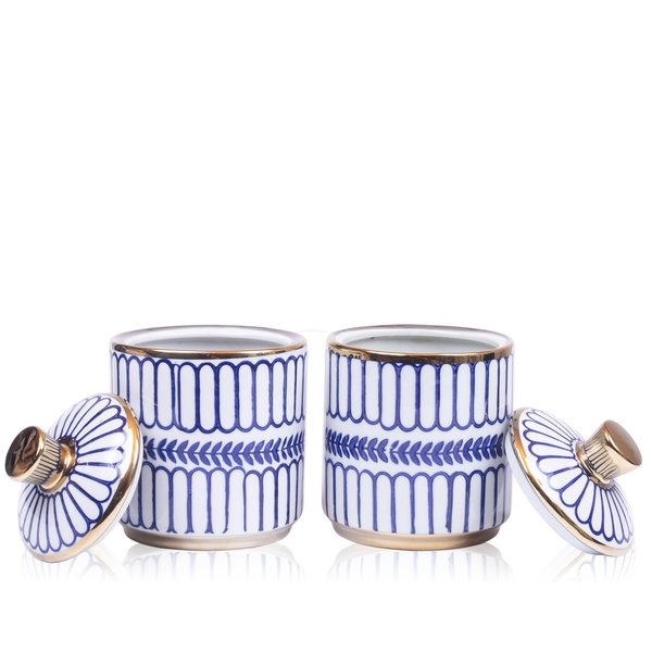 Par Potiche Decorativo C/ Tampa Azul e Branco 13x12cm