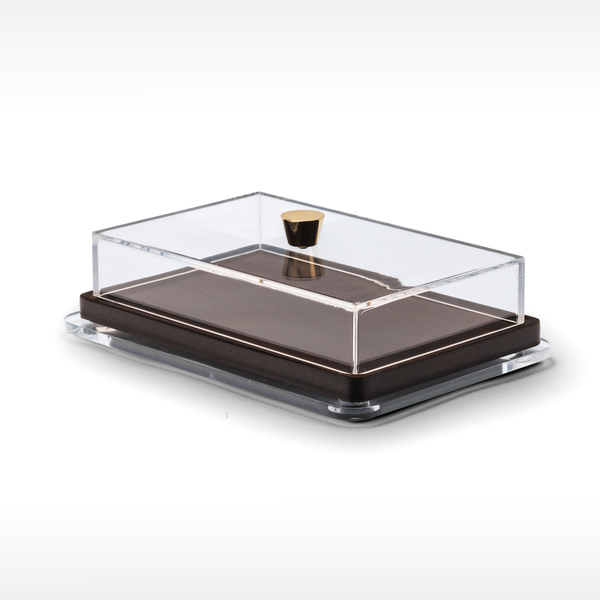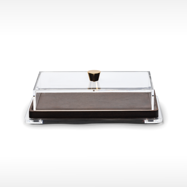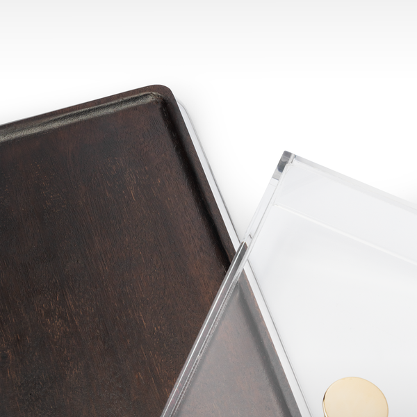 Este acessório combina a leveza e transparência do acrílico com o charme natural da madeira muiracatiara, criando um visual elegante e moderno.