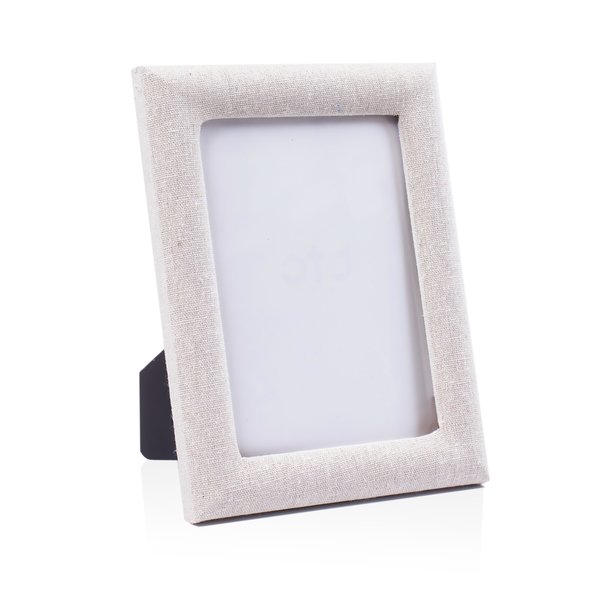 Enriqueça suas lembranças com o Porta Retrato de Madeira, adornado com elegantes laterais em linho bege.